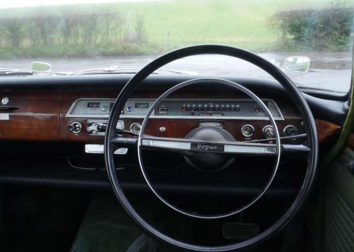 Lovely example in metallic green with matching interior, bodywork, paint and chrome are all excellent as is the interior, green carpets look quite new, wooden dash and door cappings are very good. Starts easily and runs well with light steering, a smooth automatic change and good brakes. Fitted with electronic ignition, very good Whitewall tyres, documented speedo change, old one (with car) reads 61,764, current one fitted reads 2,555 making a probably mileage of just over 64,000 miles. Comes with original green logbook, V5 and a little history, Owner’s Handbook, tools and a few spares.