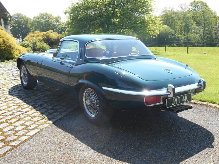 This classic 1972 Jaguar E-Type SERIES 3 V12 Automatic is Finished in the Rare Colour Scheme ,from New, of BRITISH RACING GREEN with contrasting TAN LEATHER TRIM with a Black Soft Top and COMES WITH A FACTORY DETATCHABLE HARD TOP finished in the matching British Racing Green which was also supplied when the car was new, Along with CHROME WIRE WHEELS. The Car has ONLY had 4 PREVIOUS OWNERS from NEW , the LAST OWNER for 9 YEARS ( Since 2015 till 2024) and the Owner prior to that OWNED the CAR from 1980 UNTIL 2015 (35 Years) . When the Last owner purchased the car in 2015 he had the car inspected by Miles Classic of Huddersfield which we have the report that states what a good sound original car it was but the paint had faded slightly due it being 43 years old at that time. So having purchased it he asked Miles Classic to set about giving the car BARE METAL RESPAY and to completely Recommission the car with many Upgrades which COST in EXCESS of £40,000. The CAR COMES with PAPERWORK & PHOTOGRAPHIC HISTORY DATING BACK to 1974 with ALL OLD MOTs and Copies of OLD LOG BOOKS and a letter from the OWNER in 1980 That confirms the Ownership and mileage at that time .The work carried out by the last owner is to extensive to list here so please ring for the full outline of the work and upgrades carried out. This is a very nice and well sorted example and an absolute pleasure to drive.