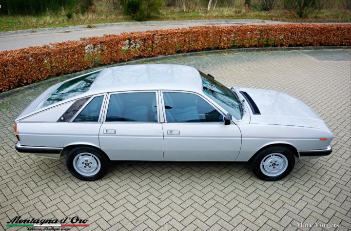 Lancia Gamma 2000 Berlina, jaar 1981. Chassisnummer ZLA830A32000066XX, motornummer 830A2000*0112XX* Kleur goud metallic (Oro Metallizato) gecombineerd met een beige stoffen interieur en donkerbruin tapijt. De Lancia Gamma Berlina van de 2e serie (1980-1984) met de 2 Liter boxermotor werd enkel in Italië verkocht, een zeldzaam model waarvan er slechts 2465 werden gebouwd. De auto is ontworpen door Pininfarina en technisch was alles aan de Gamma het neusje van de zalm. De Gamma is voorzien van volledig onafhankelijke wielophanging, schijfremmen aan alle wielen en een vijfversnellingsbak. Dit prachtige exemplaar is op 21 maart 1981 nieuw geleverd aan Francesco en Anna Marzo door de Lancia dealer in Lecce, Italië. De heer Marzo was arts in het plaatselijke ziekenhuis en de auto werd gebruikt in de weekenden en voor langere ritten. De heer Marzo overleed in het jaar 1997. Vanaf dat moment stond de Lancia in de garage. Mevrouw Marzo kon geen afscheid nemen van de Lancia. Na haar dood, ruim twintig jaar later, werd de auto door de familie verkocht. Onze contactpersoon trof de Lancia aan in volledig originele staat en met iets meer dan 21.100 originele kilometers op de teller. De auto kreeg een perfecte en professionele nieuwe lakbeurt en nieuwe achterlichten (deze vertoonden enige barsten) werden vernieuwd. Het beige stoffen interieur en het bruine tapijt zijn nog altijd in perfecte staat en als nieuw! Na interne reiniging en service van de mechanische delen hebben we de motor weer tot leven gebracht. De distributieriem wordt bij afleveringsbeurt van de auto vernieuwd. De teller staat momenteel op 21.136 kilometer. Deze Lancia Gamma Berlina verkeert in een zeer goede tot uitstekende originele staat! De auto wordt geleverd met Italiaanse documenten. Deze zeldzame Lancia Gamma Berlina is een prachtige vondst voor de Lancia verzamelaar/liefhebber.