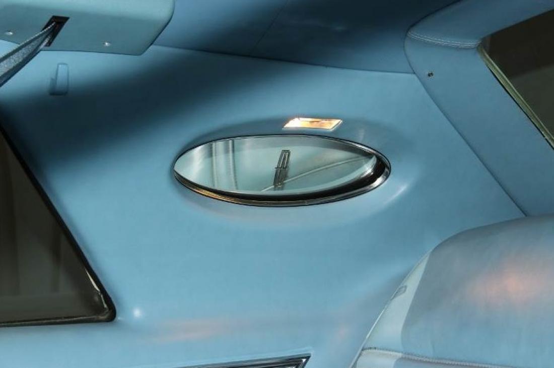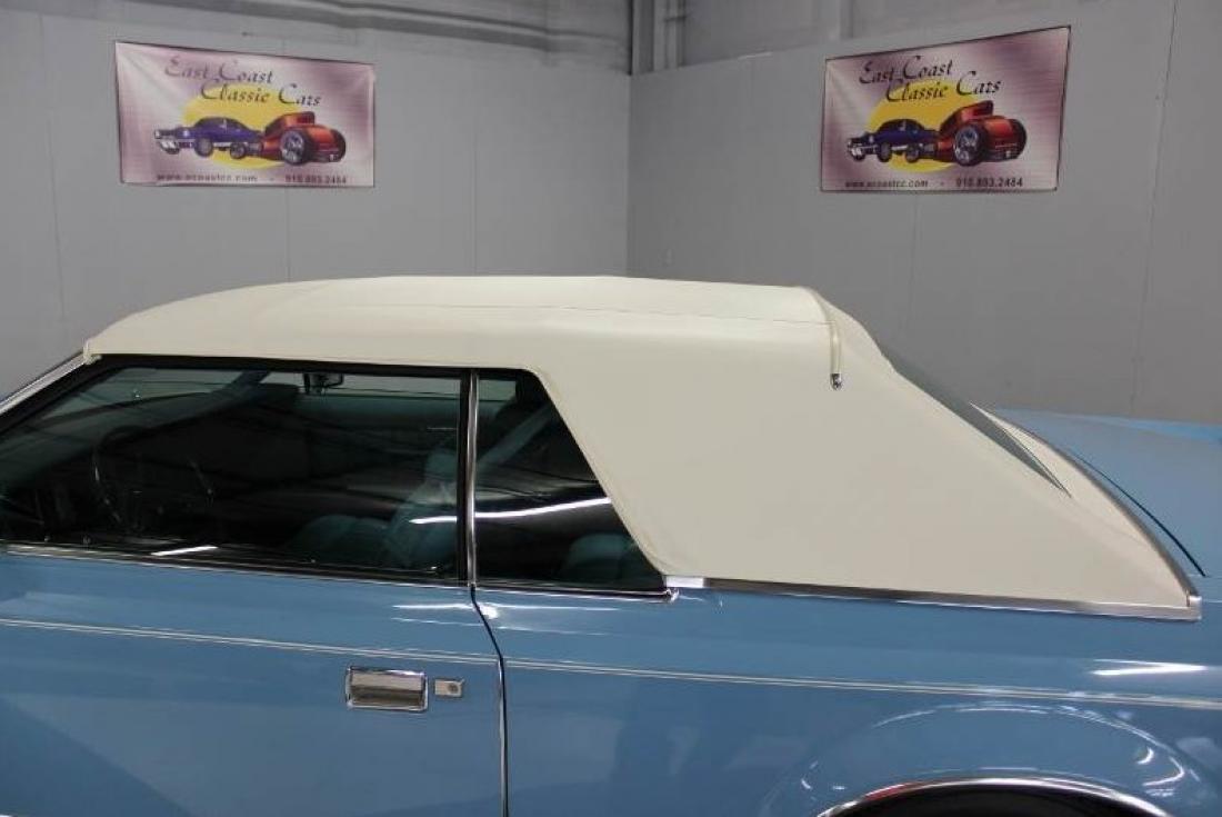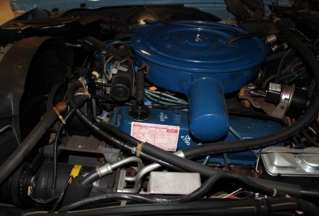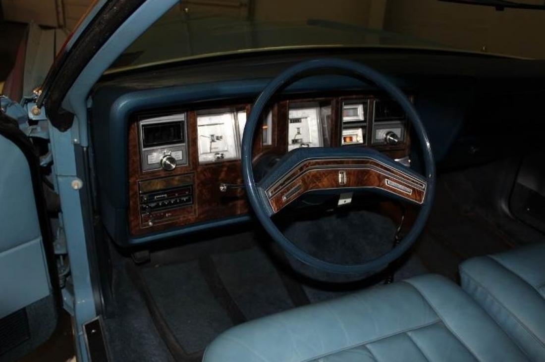 The Blue leather interior is on a power split seat, power windows, power vent windows, power door locks, tilt column, Wood grain dash, blue dash pad, blue carpet and floor mats, blue head liner and sun visors with mirrors that are lighted. Cruise control, delay lights, factory AM/FM/8 Track/CB radio. Power trunk opener in glove box. Looks new inside.