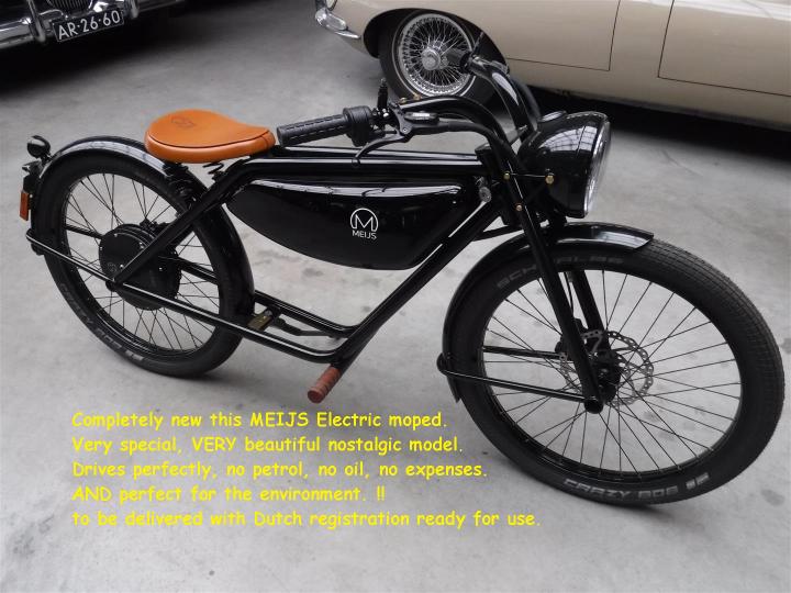 Geheel nieuw deze MEIJS Electrische bromfiets.Heel apart ZEER mooi nostalgisch model . Rijdt perfect, geen benzine, geen olie, geen onkosten.EN goed voor het milieu ! Te leveren met NL kenteken, klaar voor gebruik.