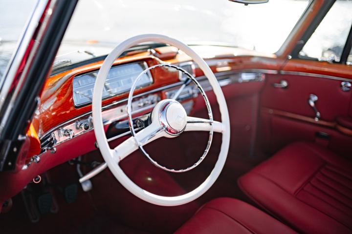 This beautiful specimen on offer was, according to the original receipt, picked up at the factory in Stuttgart on 12/06/1959 by the happy Californian owner. According to the fully completed and stamped service booklet that comes with the car, the owner has made a road trip through Europe, which can hardly be disappointing in a 220S. on 11/09/1959, according to custom's papers, the car was finally transported to California where the first owner maintained the car with a lot of love and care and remained faithful to it until 2017. Needless to say, California Classic cars are the best on the market, due to the dry and warm climate, making this 220S arguably the most excellent on the market. This 220S was finally registered by its second owner in Belgium, in 2017. Although this car was still in perfect condition, it underwent a complete ' nut and bolts' restoration to absolute competition condition, with an eye to the original configuration. For example, the bottom plates were retained. According to the data, the chassis and engine numbers are matching. which is very difficult to find today. In addition, this car is equipped with optional 4 seats, of which the seats are optionally adjustable, which makes this 220S Cabriolet extremely rare.
